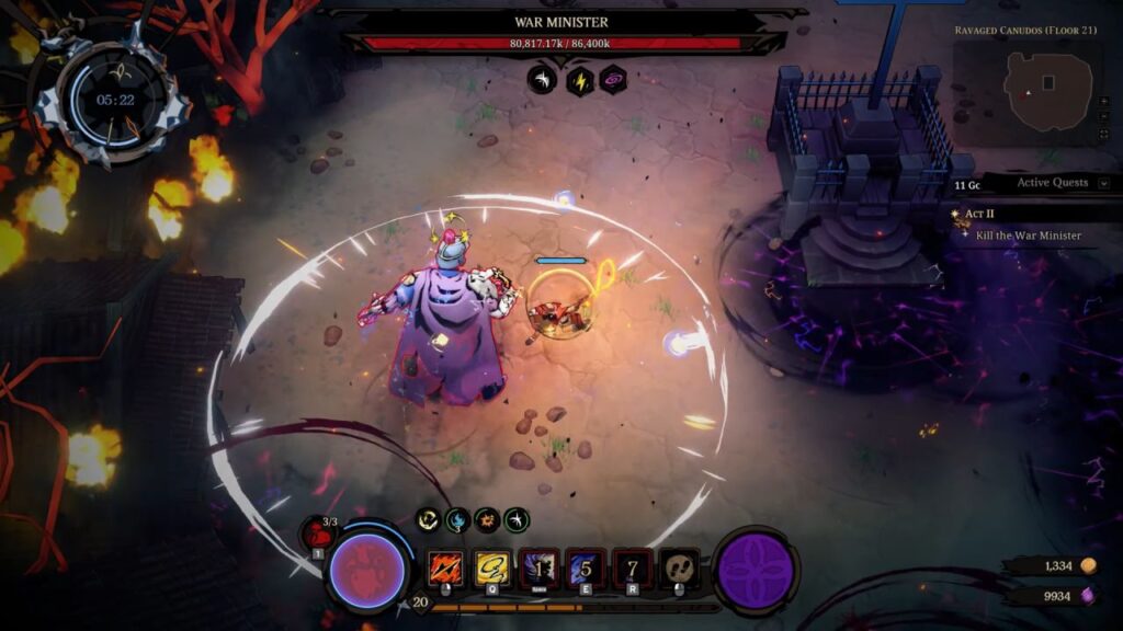 Como comentado no paragrafo anterior, o game se trata de uma leve mistura entre um ARPG e um roguelike/lite padrão, em que seu diferencial é que as runs são pautadas não apenas pela derrota, mas por um limitador de tempo. Após o final de cada rodada, somos enviados para a área central do jogo, de onde recomeçaremos.